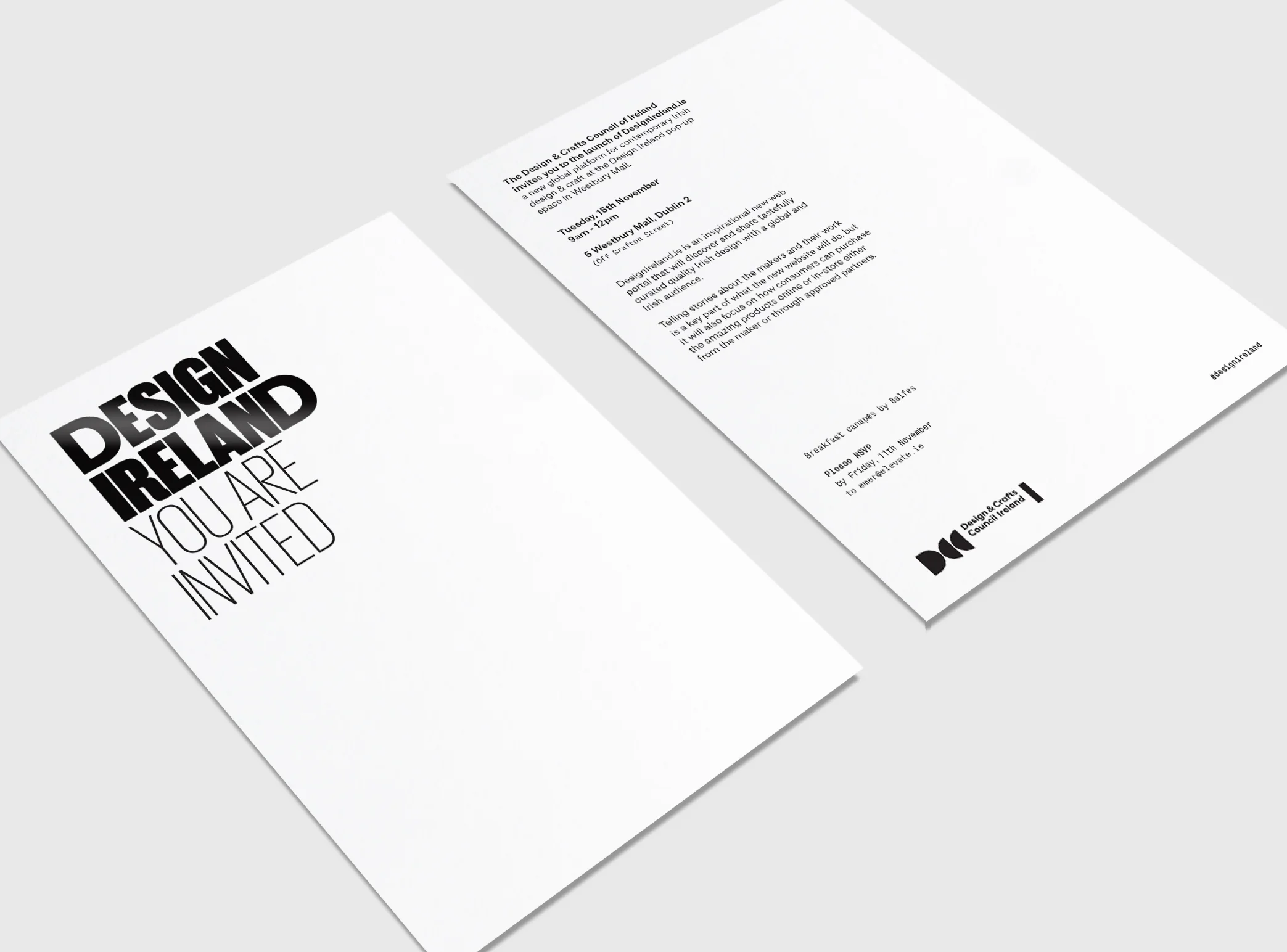 The Design & Crafts Council of Ireland approached us to create an umbrella brand for Irish craft and design makers. While Irish crafts were seen favourably overseas there was no central place to search and shop the breadth of Irish design. We created the Design Ireland brand from scratch - a simple, uncluttered, bold brand that refreshed the tone of Irish craft. The logo pays homage to the bold typographic styles found in mid-century Irish woodblock posters. From jewellery to accessories to homeware - this brand needed room for them all. We developed a visually striking photographic style to unify the vast and varied world of contemporary Irish craft in a recognisable, confident way.